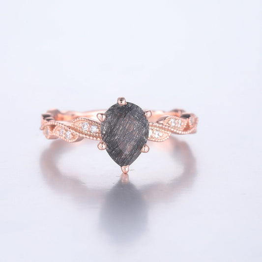 Buy Now14K Solid Rose Gold Wedding Ring, Pear Shape Black Rutile Ring 14K Solid Gold Ring, Black Rutile Ring, Rutile Jewelry, Pear Ring, Prong Ring