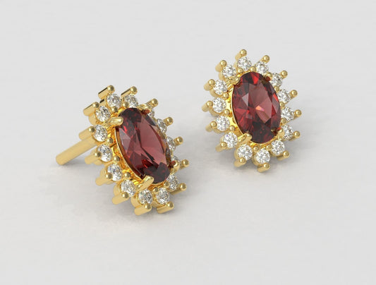 Buy NowOval Garnet and Diamond Jewellery Set Garnet Ring Garnet Earring And Garnet Necklace JewellerySet