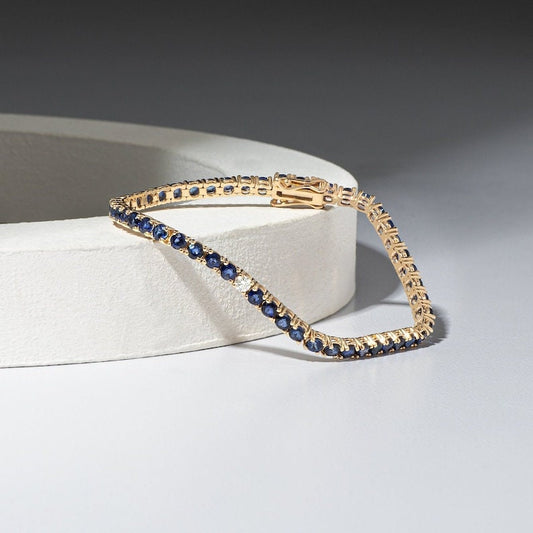 Buy NowBlue Sapphire Daimond Dainty Bracelet, Blue Gemstone Bracelet, Oval Shape Sapphire Bracelet, 14k gold vermile Tennis Bracelets
