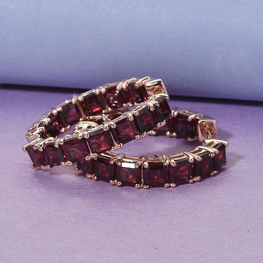 Garnet Hoop Earrings: 925 Sterling Silver, Red Gemstone