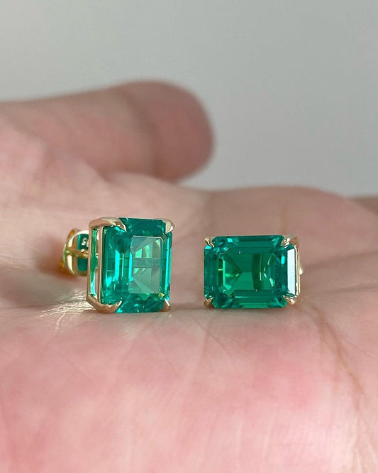 Genuine Square Emerald Earrings, Emerald Earrings, Emerald Stud Earrings, Bridesmaid Gift, May Birthstone, Emerald Studs, Anniversary Gift