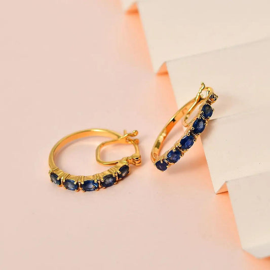 Large Sterling Silver Huggie Hoop Earrings with Sapphire Blue, Simple Hoop Earrings, Sapphire Blue Large Hoop Earrings, 25mm Oversize Hoops