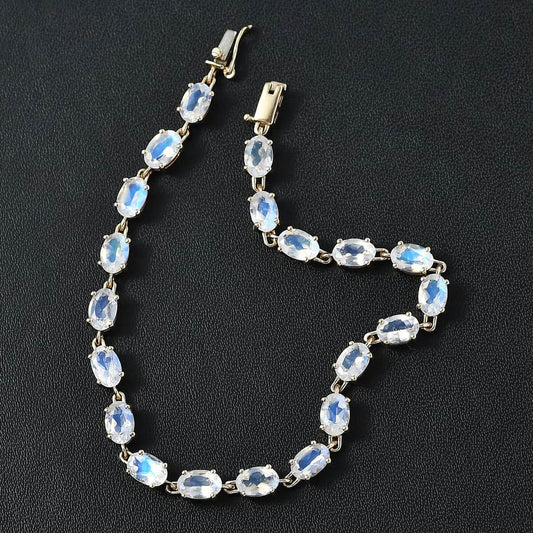 Handmade Rainbow Moonstone Tennis Bracelet - Sterling Silver - Natural Rainbow Moonstone Bracelet - Tennis Style