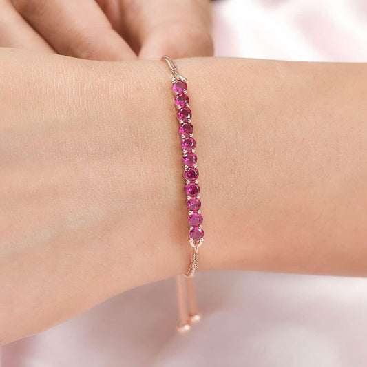Genuine Ruby Bolo Bracelet for Her, Ruby Bracelet, Dainty Round Red Gemstone Silver Bracelet for Her, Bridesmaid Gift, Bridal Bracelet