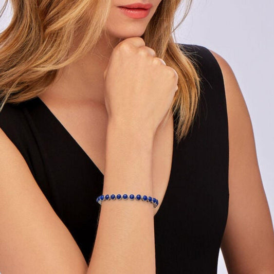 Handmade Lapis Lazuli Tennis Bracelet: Sterling Silver Gemstone Jewelry