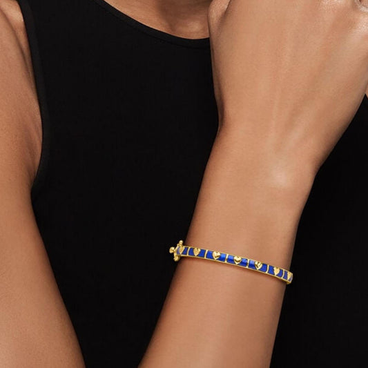 Gold Plated Heart Enamel Bangle: Sterling Silver Stackable Cuff