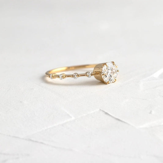 Oval Diamond Engagement Ring, Round Diamond Ring, Round 14k Gold Diamond Ring, Round simulated Diamond Ring, Distance Diamond Ring