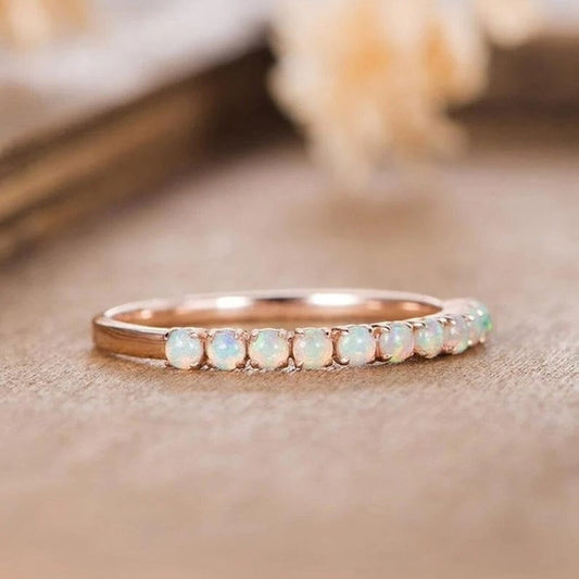 opal wedding band, fire opal ring, opal eternity band, october birthstone, anniversary gift for women, matching band, opal promise band