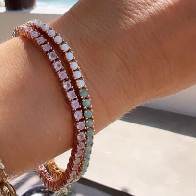 Opal & Amazonite Tennis Bracelet, Natural Amazonite Bracelet, 925 Sterling Silver, Tennis Bracelet, March Birthstone, Gemstone Bracelet