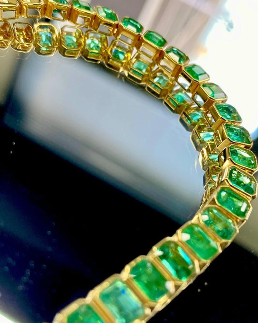 Octogan Cut Emerald and Diamond Tennis Bracelet 6x4mm Gemstone Bracelet, Yellow Gold Emerald Tennis Bracelet, Prong Set Tennis Bracelet