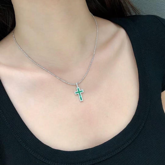 Natural Square Emerald Gemstone 14k Gold Handmade Pendant, Emerald cross necklace, Birthday Gift Christmas/Engagement/Gift For Anniversary