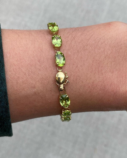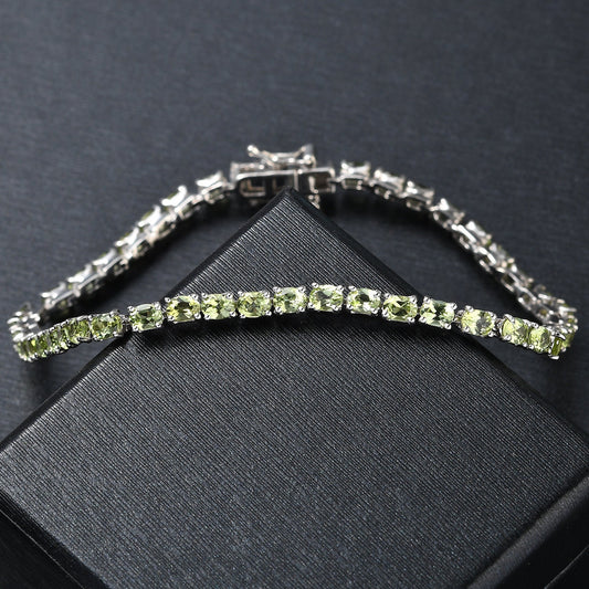 Peridot Bracelet, Natural Peridot Oval Tennis Bracelet in .925 Sterling Silver, August Birthstone Bracelet, Gifts for Her, Green Gemstone