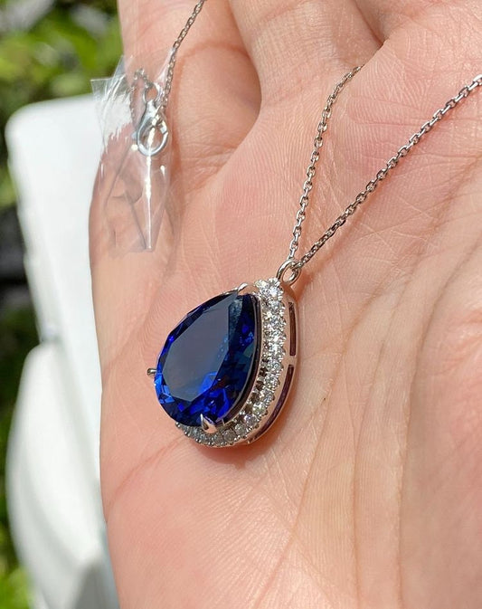 Pear Blue Sapphire Pendant Necklace: 14k Yellow Gold Teardrop