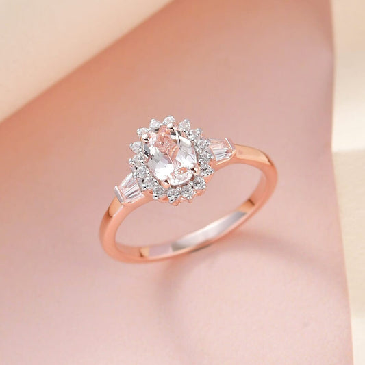 Oval Morganite Engagement Ring, 14K Rose Gold, Oval Morganite Ring, Engagement Rings For Women, Diamond Wedding Band,morganite gold
