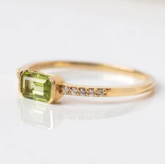 Peridot Baguette Ring-Solid 14k Gold Peridot baguette Ring-Art deco ring-Rose Gold peridot ring-August birthstone-Birthstone Ring