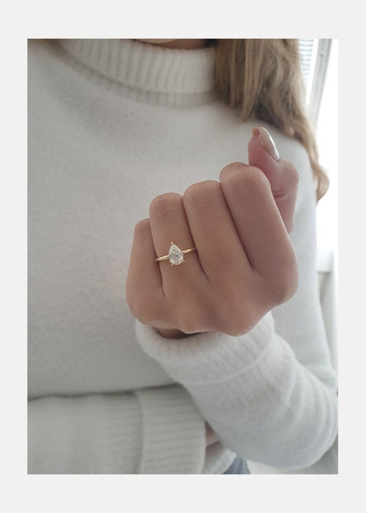 Pear Cut Diamond Ring, Silver Diamond Ring, Pear Cut Diamond ring, Pear Cut Lab Grown Diamond Solitaire Engagement Ring, 14k Yellow Gold