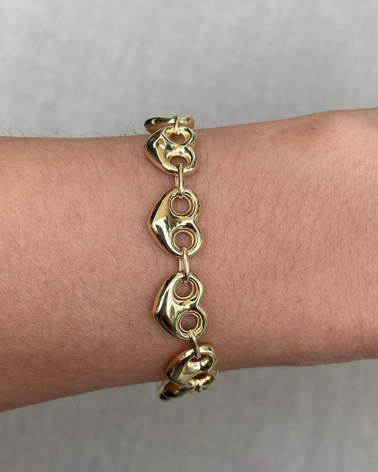 14k gold puffy heart mariner bracelet | 18k gold bracelet | best for gifting | daily wear bracelet mariner bracelet , best for gifting