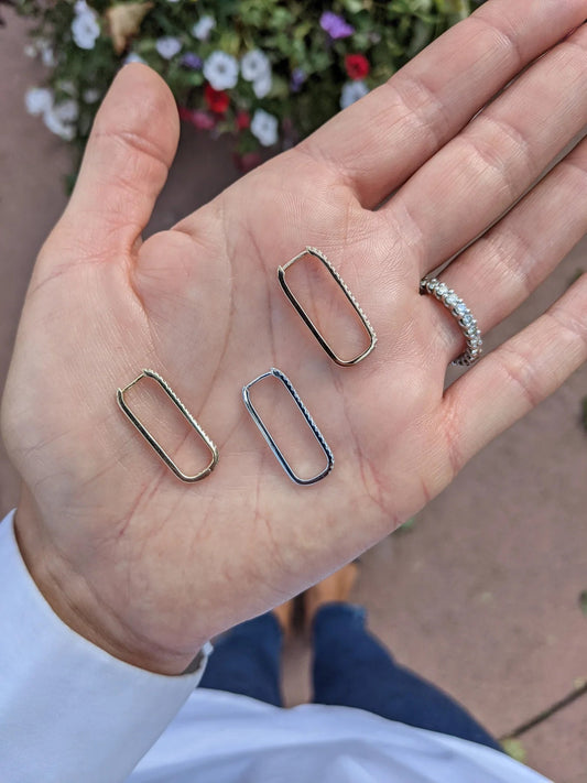 14K Hoop Earrings / 14k Gold Rectangle Diamond Hoop Earrings / Unique Hoop Earrings / Diamond Paperclip Hoop Earrings by GoldjewelryshopIN