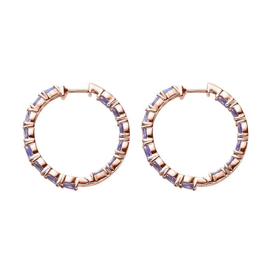 14K Rose Gold Tanzanite Hoop Earrings, Rose Gold Tanzanite 6.50 ctw Hoop Earring i 14K Gold, Gift For Her, Mom Gift