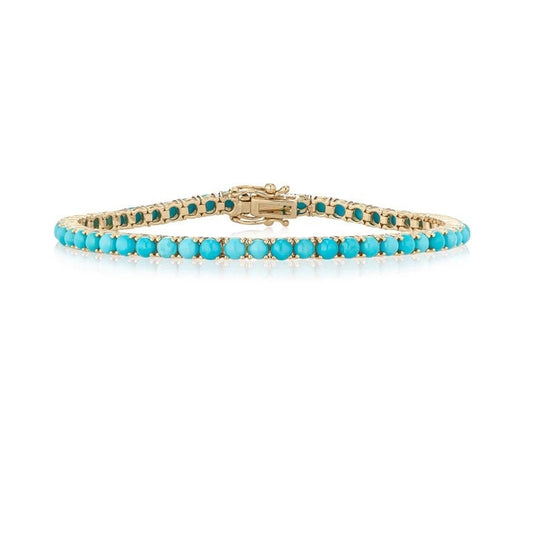 14K gold Turquoise tennis bracelet with diamond | Round natural turquoise tennis bracelet gold | Art Deco vintage turquoise bracelet gold