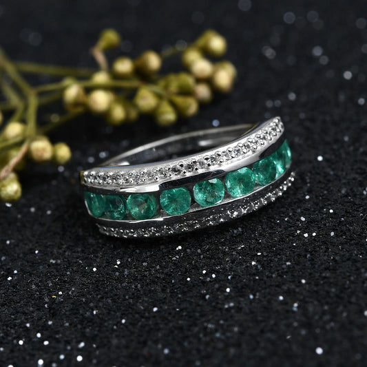 Vintage 3Ct Green Emerald And Diamond Halo Wedding Band Ring, 14K Gold Emerald Ring, Natural Green Emerald & Diamond Ring,