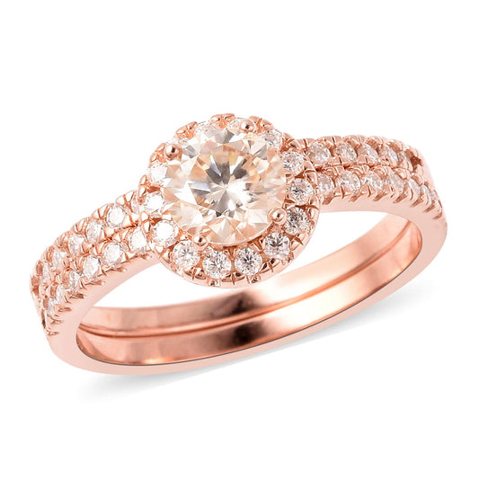 Vintage Emerald Cut Morganite Ring: 14K Rose Gold Vermeil, Diamond Accents