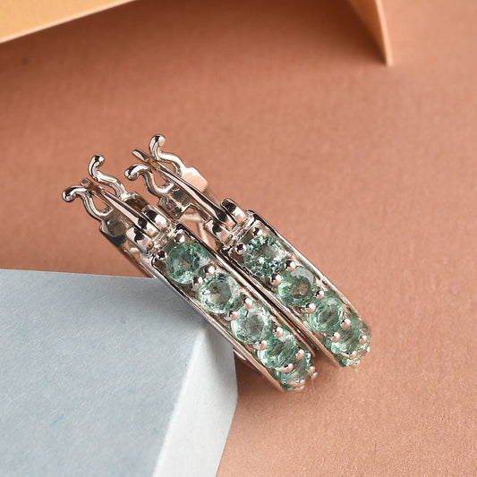 Emerald Earrings, Genuine Emerald Hoop Silver Earrings for Women, Natural Green Gemstone Earrings, Bridesmaid Gift for Her