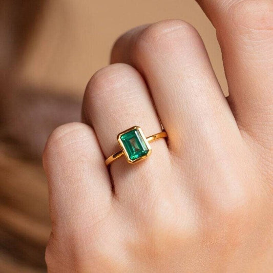 Emerald Baguette cut Band Ring, Emerald Band, 14K Gold Emerald Band, Diamond Band, 14K Gold Band, Green Stone Band, Silver Band,Gift For Her