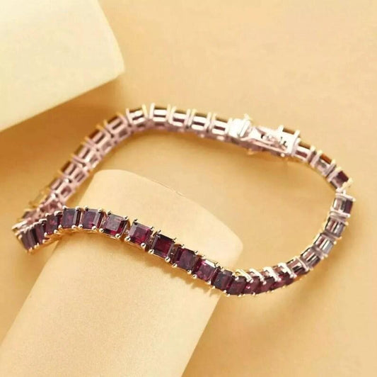 Elegant Sterling Silver Garnet Bracelet - Dazzling Red Garnet Tennis Bracelet - Ideal Wedding Jewelry - Gorgeous Garnet Gemstone Bracelet