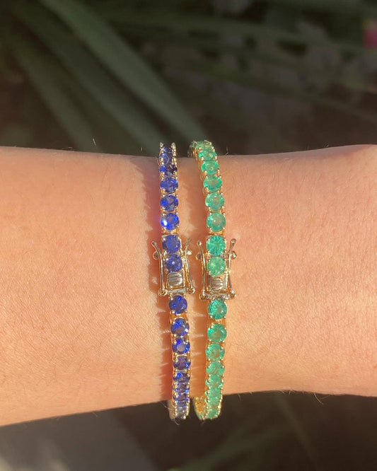 Emerald and Blue Sapphire Tennis Bracelet, Two Gemstone Tennis Bracelet Set, Yellow Gold Tennis Two Bracelet, Prong Set Tennis Bracelet