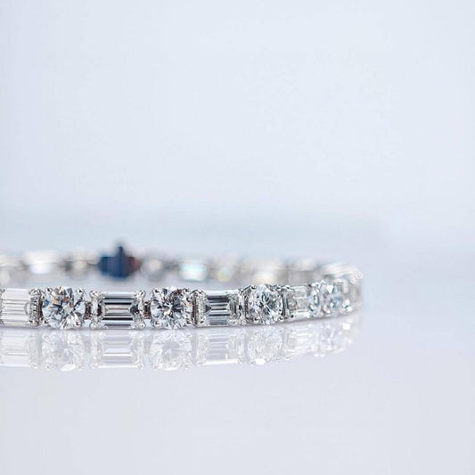 Emerald Cut Moissanite Tennis Bracelet: Sterling Silver Baguette Bridal Jewelry
