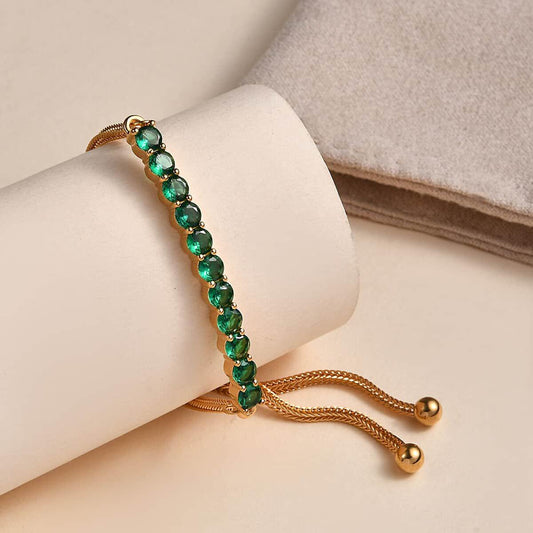 Emerald Gemstone Sterling Silver Bolo Bracelet, Elegant May Birthstone Adjustable Bolo Bracelet for Women with Ball Clasp