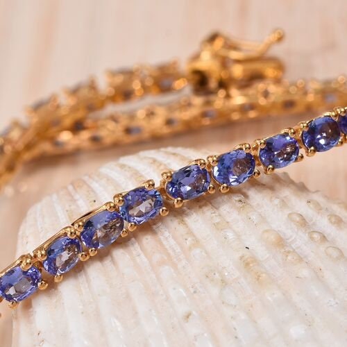 Natural Tanzanite 18K Solid Gold Bracelet, Fine Jewelery, December Birthstone, Gift For Her, Oval Cut Tanzanite Tennis Bracelet For Her