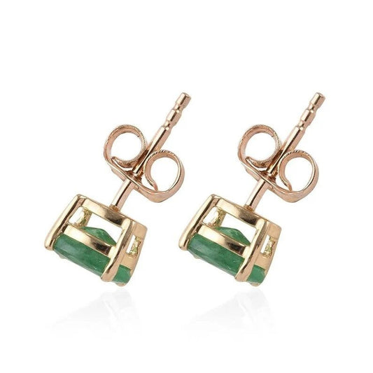 Emerald Stud Earrings in 14k Real Gold for Women, May Birthstone Earrings, Gemstone Earrings, 14k Gold Studs, Emerald Jewelry