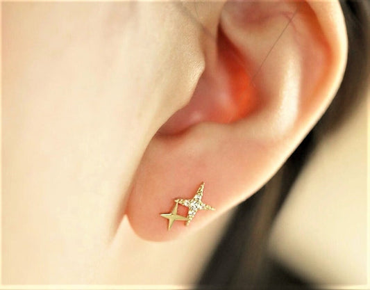 Dainty North Star Moissanite Delicate Celestial Earrings 14K Solid Gold Inset Stone Earring Handmade Charm Ear Studs Minimalist Earring