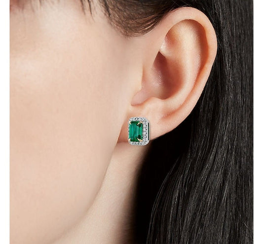 Minimalist Oval Emerald Stud Earrings - Sterling Silver