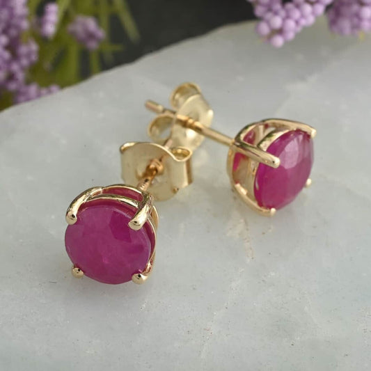 Natural Ruby 14K Yellow Gold Stud Earring, Ruby Stud, Mom Gift, Gift For Her, 10K Yellow Gold AAA Ruby Stud Earrings 1.50 ctw Ruby Earring