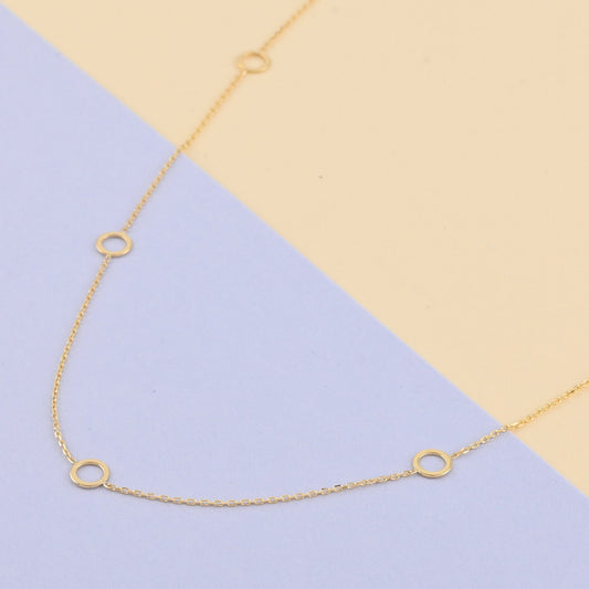 14K Solid Yellow Gold Chain Necklace, Chain Necklace, Gold Chain Necklace, Round Charm Necklace