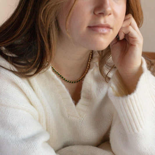 Silver Emerald Tennis Baguette Necklace, Emerald Green Choker, Waterproof Jewelry, Gemstone Zircon Necklace, Tennis Choker Neckloace