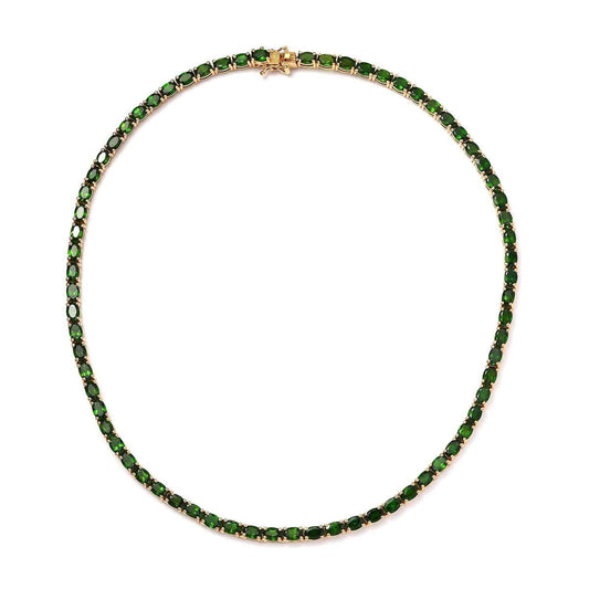 Chrome Diopside Tennis Necklace 18 Inches in Vermeil Yellow Gold Over Sterling Silver 33.00 ctw, Tennis Necklace in Yellow Gold Plated