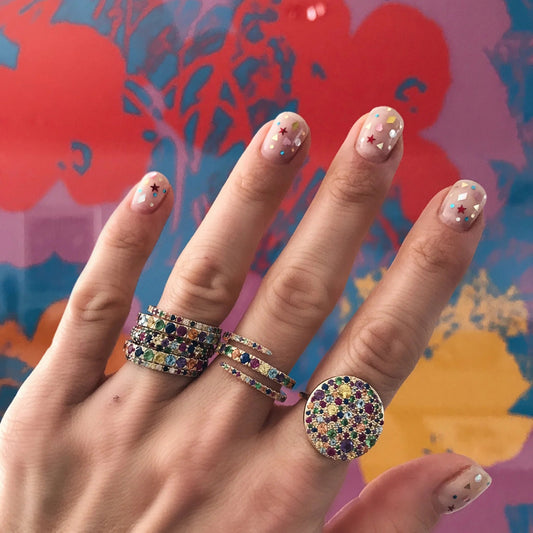 Multi Rainbow Sapphire Ring, Half Eternity Band Ring, wedding band Women Jewelry Stacking Matching Bridal Anniversary gift for her Promise