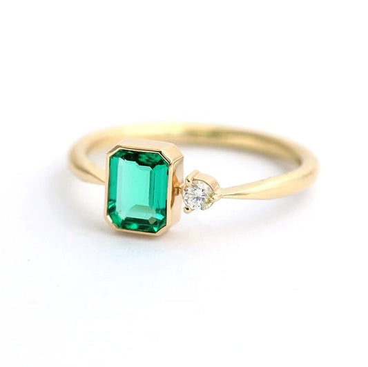 Emerald Ring, Natural Emerald Ring, Dainty Emerald Ring, Emerald Gold Ring, Christmas Gift, Promise Ring, Gift For Her, Solitaire Ring