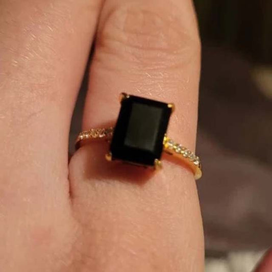 Black Emerald Cut Moissanite engagement ring, Onyx Emerald Engagement Ring, Anniversary Ring, Wedding Ring, Gift For Her