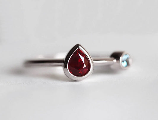 Pear Shape garnet Engagement Ring in Silver / Teardrop Garnet / Natural Garnet and Diamond Engagement Ring / July Birthstone / Promise Ring