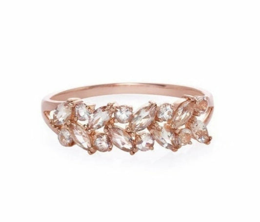 Rose Gold Plated Morganite Bridal Ring in Sterling Silver - Eternity Wedding Band