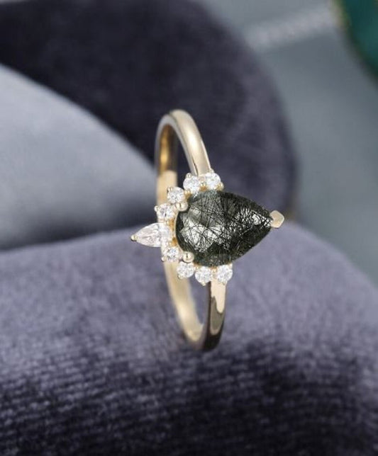 Moss Agate Marquise Cut Ring, Rose Gold Unique Engagement Ring