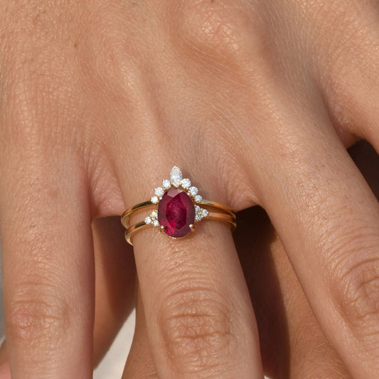 Anniversary Gift for Wife - Oval Ruby Diamond Ring