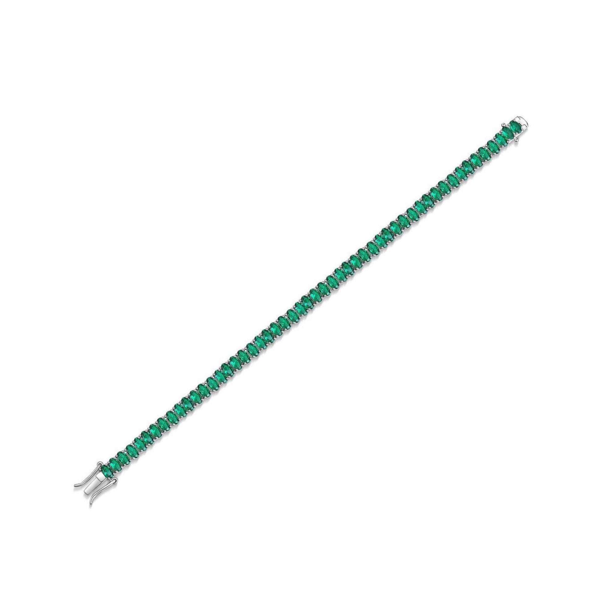 14k Gold Lab Emerald Tennis Bracelet - Sterling Silver Oval Shape