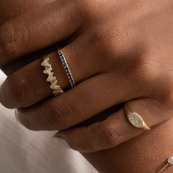 14K Gold Sapphire Ring, Half Eternity Blue Sapphire Wedding Ring, Stackable Natural Genuine Sapphire Ring, September Birthstone Ring