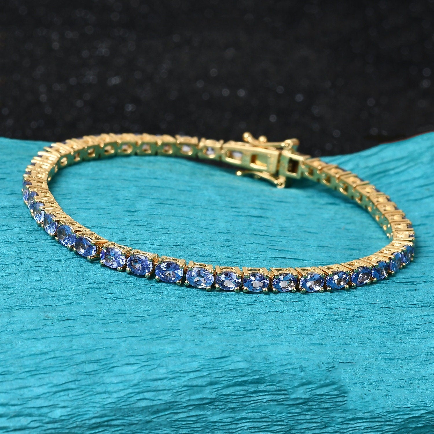 AAAA Tanzanite Tennis Bracelet in Yellow Gold Plated Sterling Silver, Tanzanite Bracelet, Gemstone Bracelet, Tanzanite Line Bracelet for Her